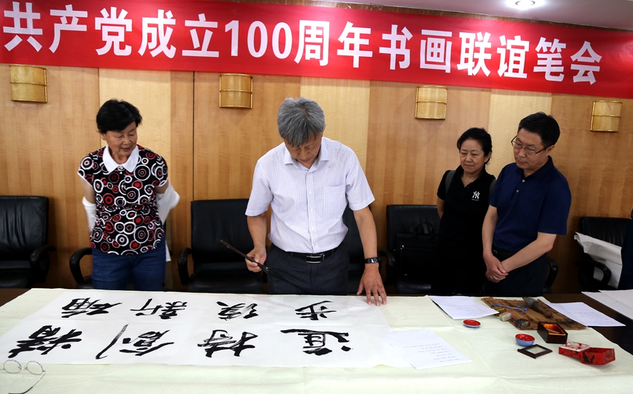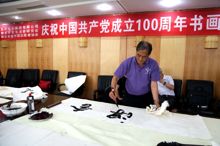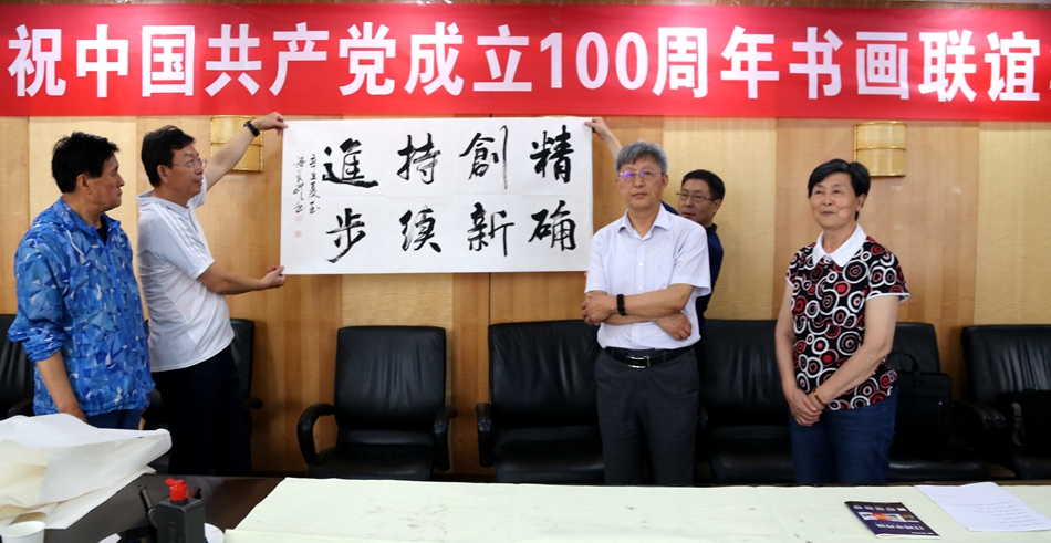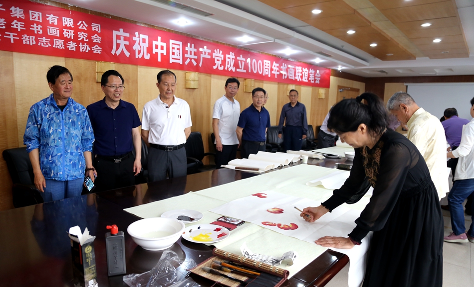 为庆祝中国共产党成立100周年,回顾党的奋斗历程,歌颂美好新时代,助力公司企业文化建设。6月24日,大连北鸣洋供应链管理有限公司、烟台市老年书画研究会、烟台市老干部志愿者协会共同举办“庆祝中国共产党成立100周年联谊书画笔会”。本次活动共有18位县处级退休老干部书画家参加。